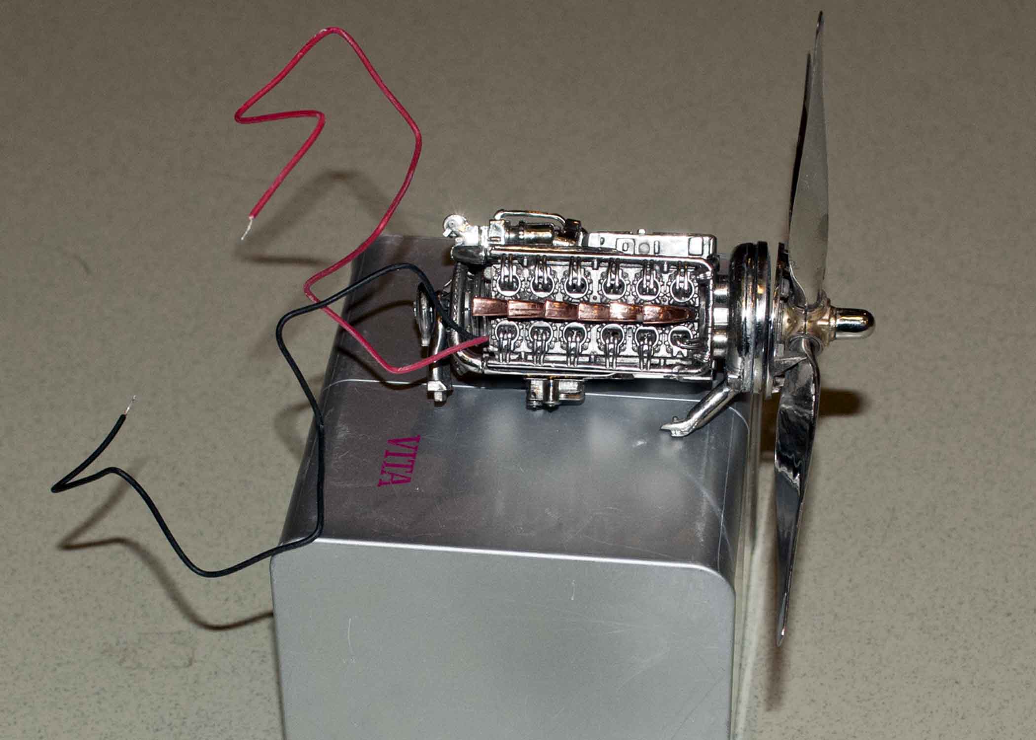 Scratch built interior, wheel doors, brake lines and replacement prop.