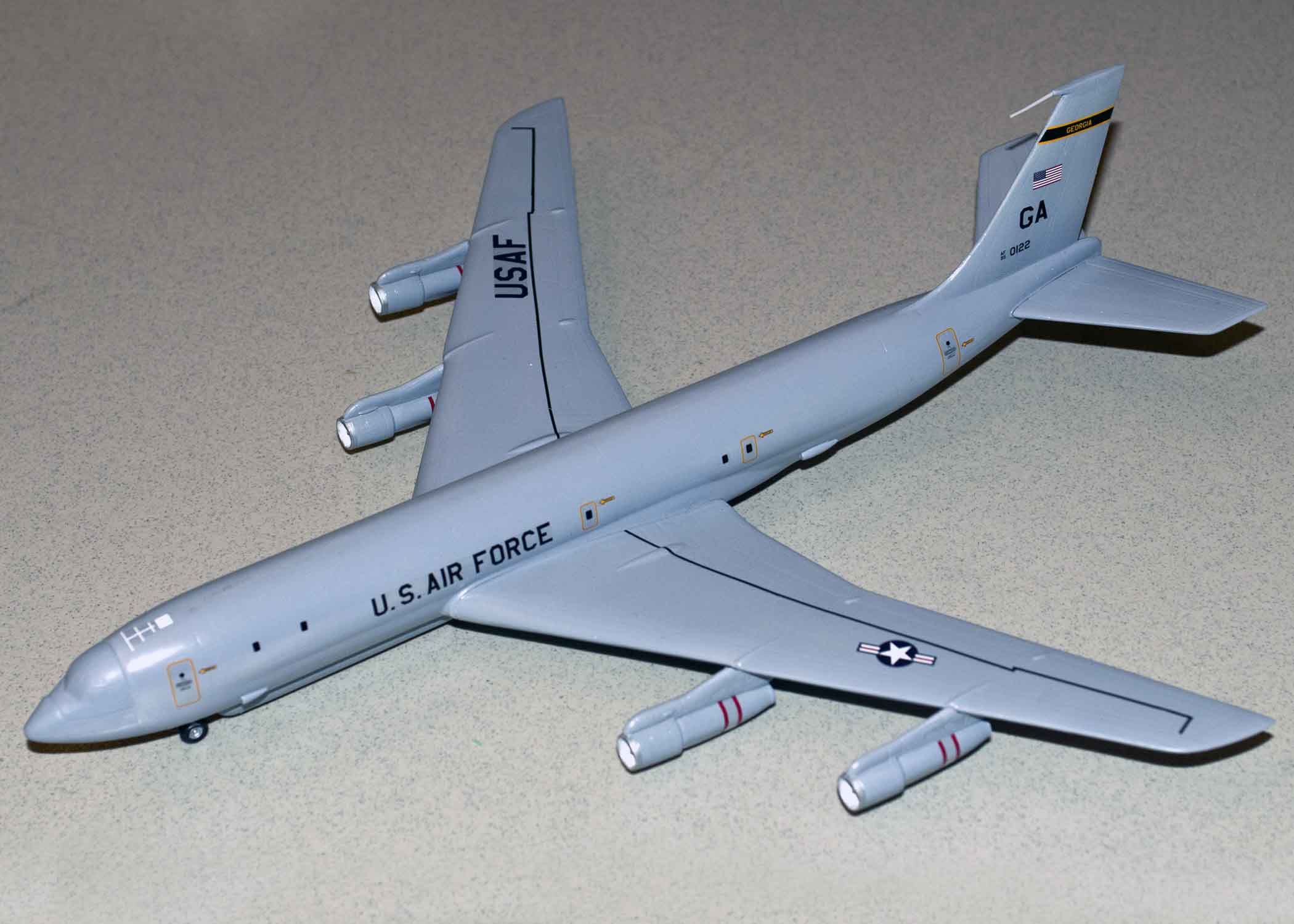 Boeing E-8 J-STARS 1/144 Minicraft – Paul Gasiorowski. Model Master Acrylics. Some fit problems for the windscreen to fuselage fit.