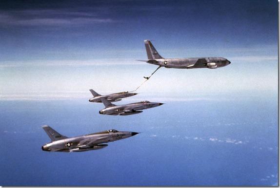 The package launched, joined up, refueled off a KC-135 and headed north, only to find a solid overcast at the let down point. The mission was obviously a No-Go due to weather. But instead; Powers’ gave a slight wing rock, a wordless command to join in tight nine-ship “V” formation and descended into the clouds. No one would have criticized him one bit if he canceled for weather and returned to base. Instead, he pressed on and the Thuds followed tucked in tightly on his wings. Imagine a nine-ship Vic in cloud, heavy with fuel and bombs, bouncing around-pretty damn exciting.