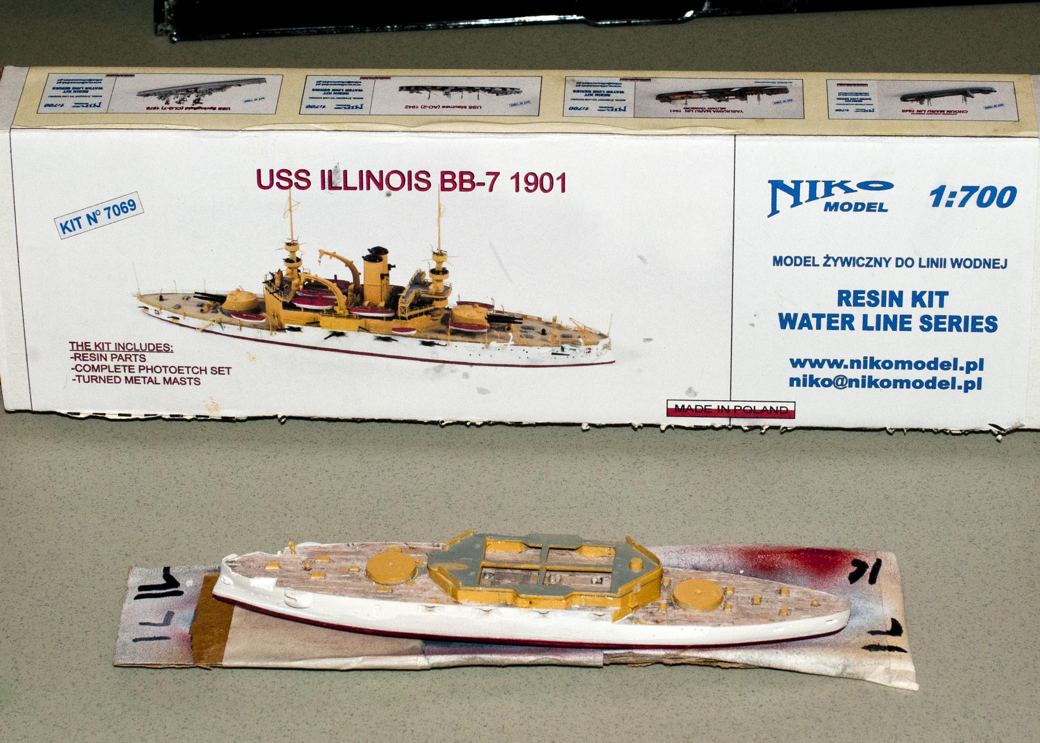 USS Illinois BB-7 – 1901, 1/700th, NikoModel, built by Steve Kumamoto