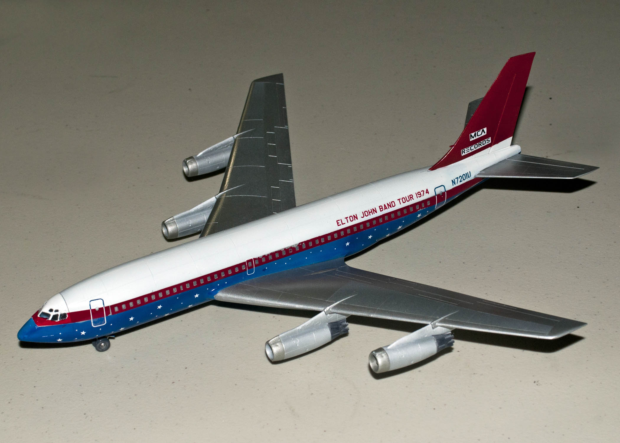 Paul is still on his 1/144th wide body “kick” and had this attractive scheme which represents Elton John’s tour plane that he used in the 1970’s.