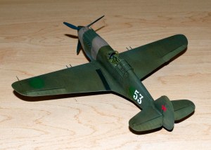 Xtra Decals depicting a Russian P-40 1941-2. Vallejo paints were used including dark O.D. and neutral gray. Light blue was used to simulate painting over the U.S. Insignia as the P-40’s were delivered to Russia with U.S. markings.