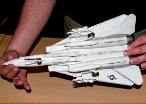 Built out of the box, it was a good build – basically shake and bake. This kit is the best engineered Tomcat in any scale. Jim encountered no problems assembling it. Model Master paints used throughout. Clear blue was used to tint the canopy. The decals represent VF-84 Jolly Roger squadron.