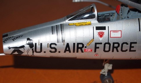 Here is another one with Super Scale decals. Notice how tightly Penny fits on the nose of this Trumpeter kit. The “Rescue” button is a fixed detail on the fuselage. The space between “AIR” and “FORCE” accommodates the rescue markings. The whole strip of “U. S. AIR” had to be checked to make sure there was room enough for Penny. Things are a bit tighter than the real thing.
