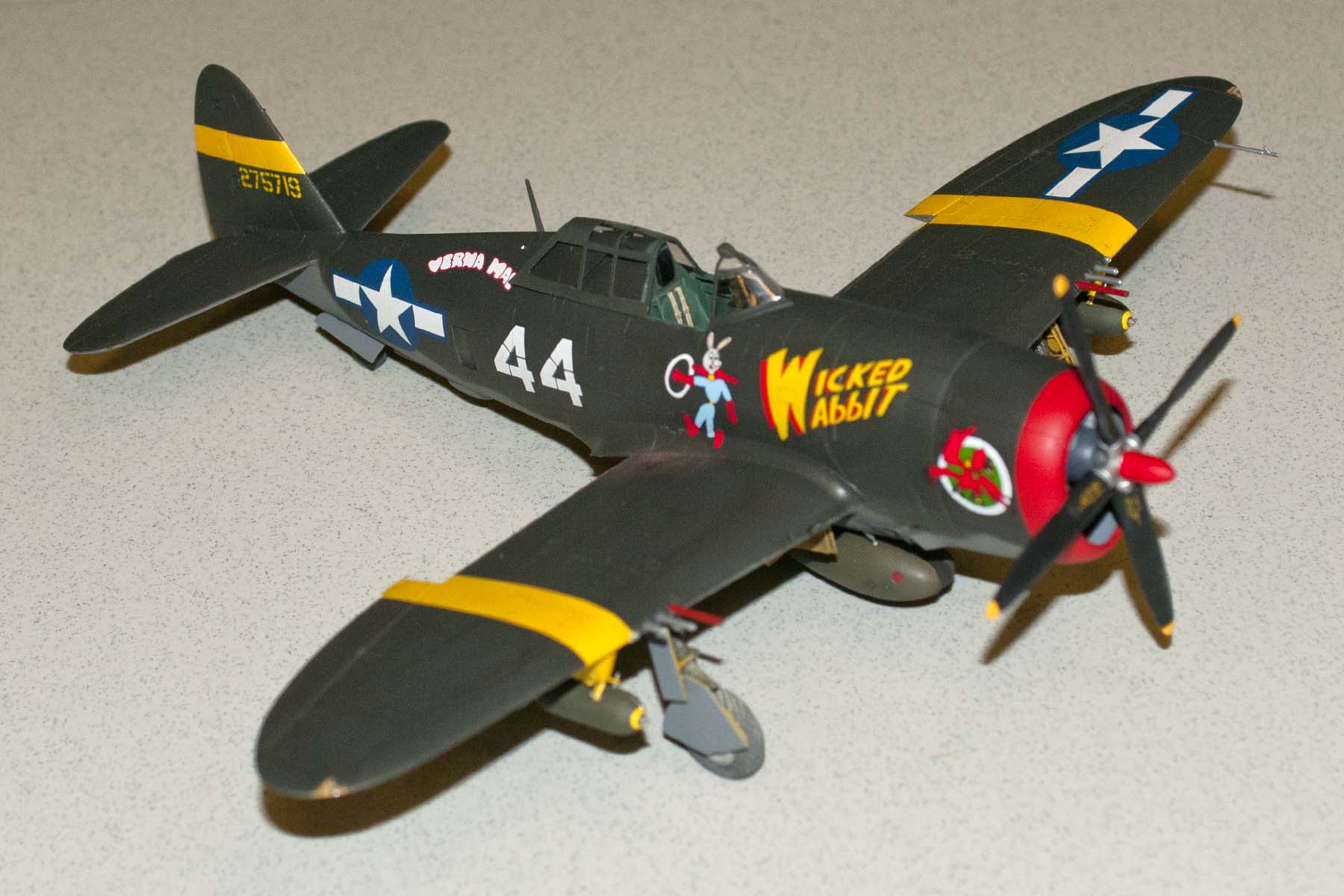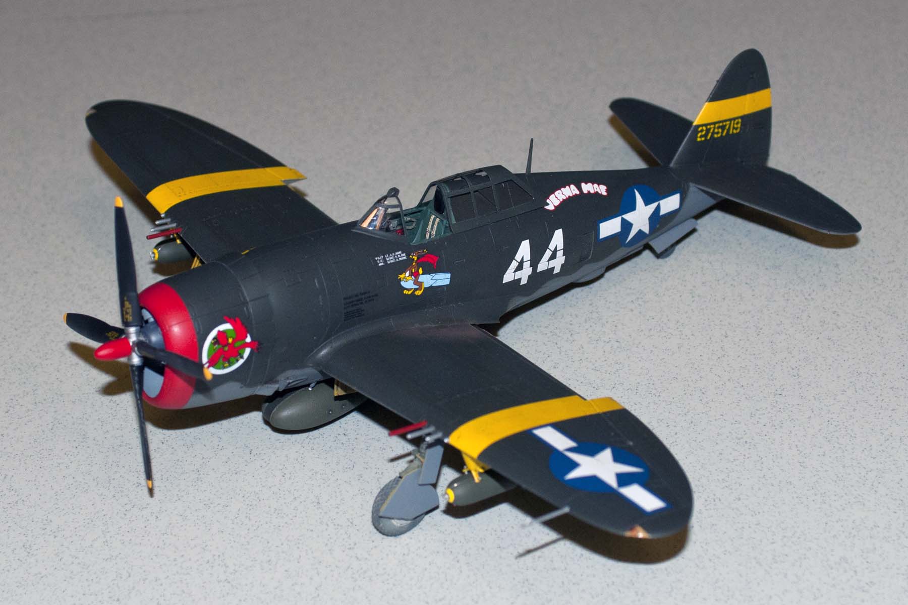 For my Mustang I used Eagle Strike sheet 48-274 4th Fighter Group P-51 Mustangs. I chose Capt. Howard Hively’s “The Deacon”. The aircraft is in standard Olive Drab over Neutral Gray. With full invasion stripes and a red spinner and noseband.