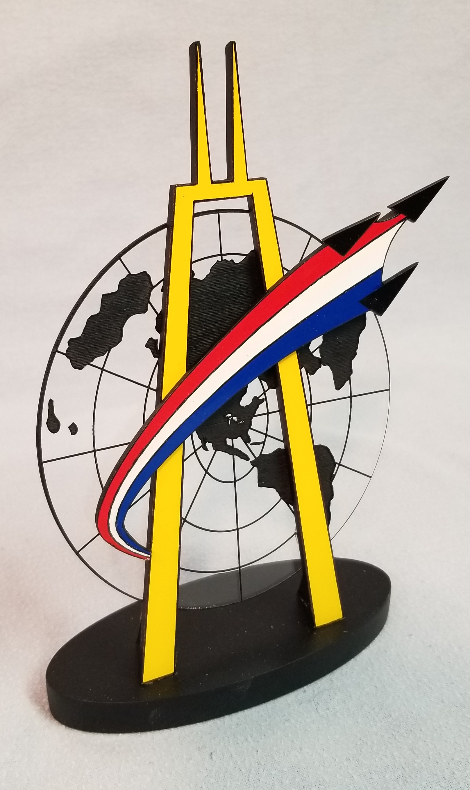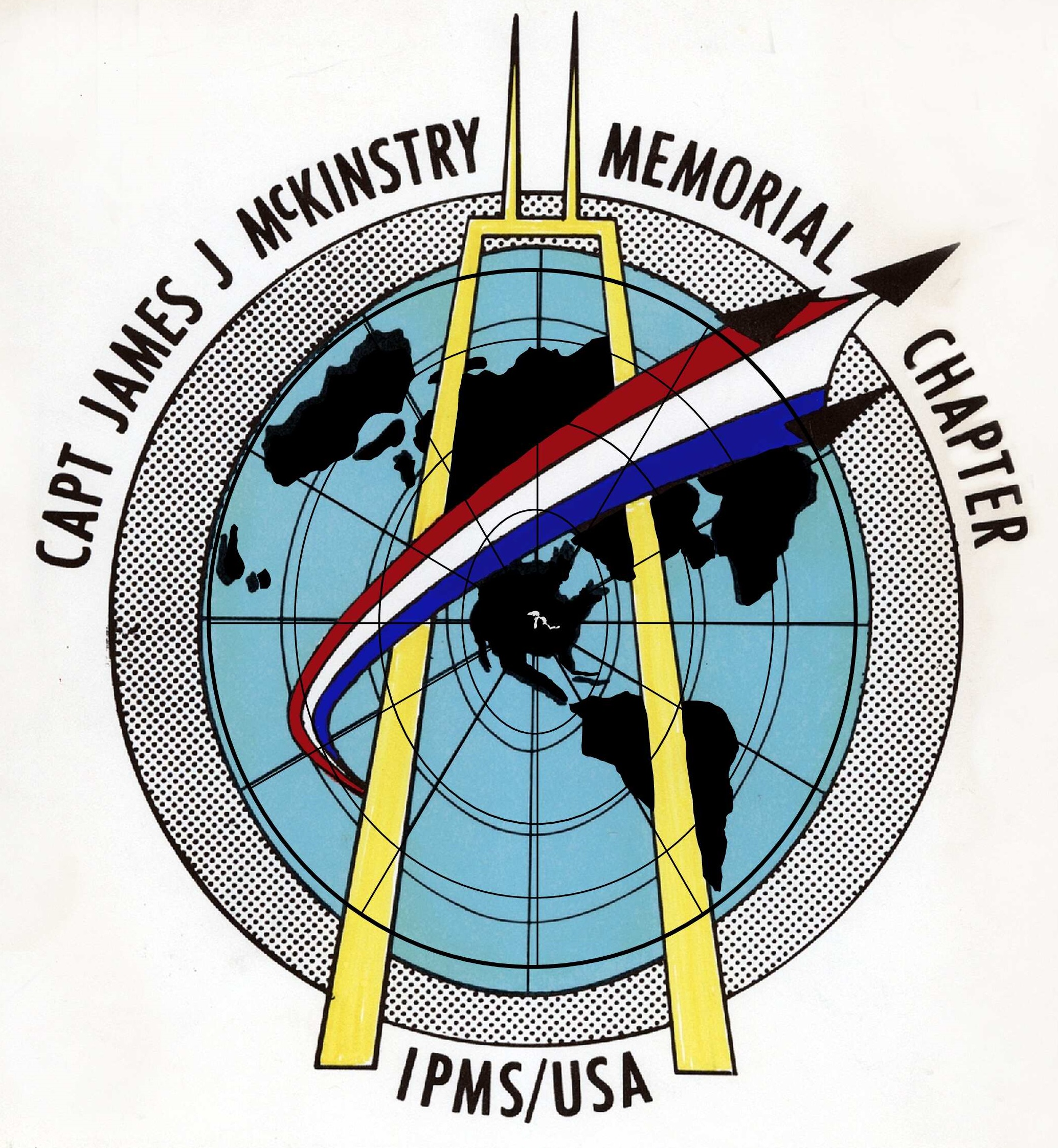 The design for the figure was taken from the club logo (Fig. 3). The logo itself was designed by one of the original club members over 50 years ago, when McK was first chartered. I wanted to incorporate the 3 main elements – the ‘world projection’ that was taken from the IPMS-USA logo, a stylized John Hancock building to represent our Chicago home, and the ‘swoosh’ of 3 jets that represent a missing man formation to represent our namesake, Capt. McKinstry. I already had a fair selection of sheet plastic on hand that I could use for materials.