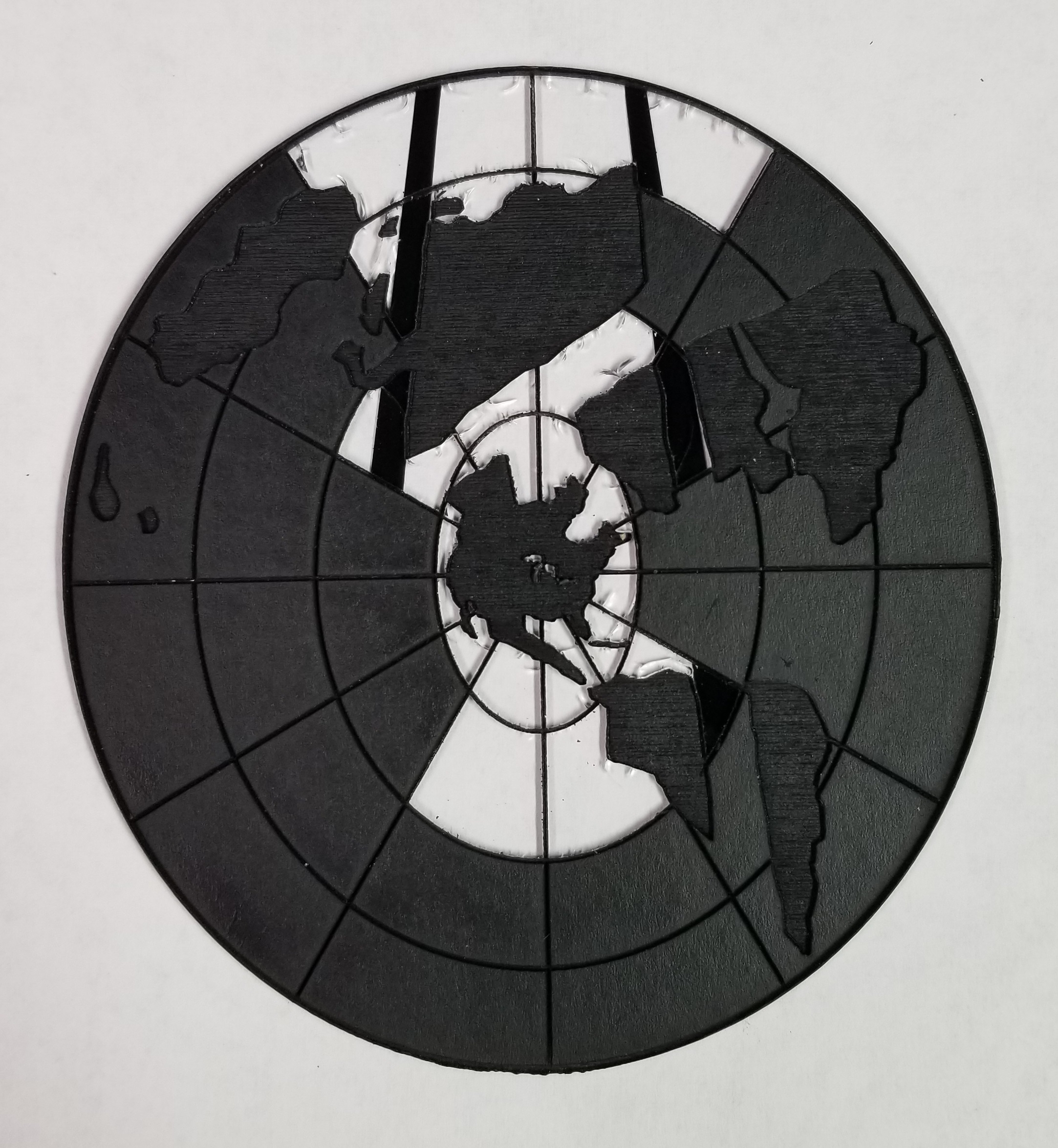 One advantage of the laser cutter was that I could engrave, as well as cut. Painting the landmasses and lines on a clear plastic sheet seemed a daunting task. Using the laser cutter to engrave those features seemed an easier approach. It also had the advantage that I could engrave through the protective paper on the material. Instant mask! Just engrave, spray, and peel! In the end, that worked well – but the devil, as they say, is in the details!